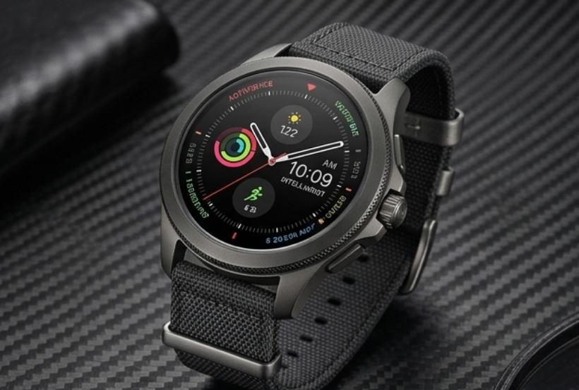 IntellWrist Dark-Horse , Smart-Watch with a single round dial analog Super Amoled display with Blue tooth-connectivity with IP69 Water-Resistant Rating. A smart watch with SnapDragon 8 Elite 3 Processor which justifies it’s name fastest ever smart-watch on which you can even play BGMI